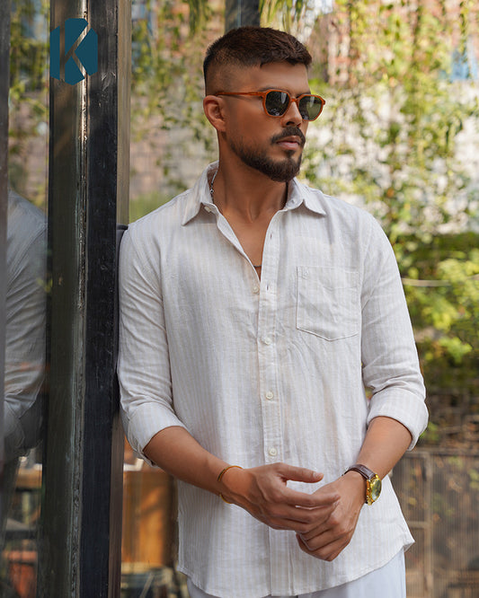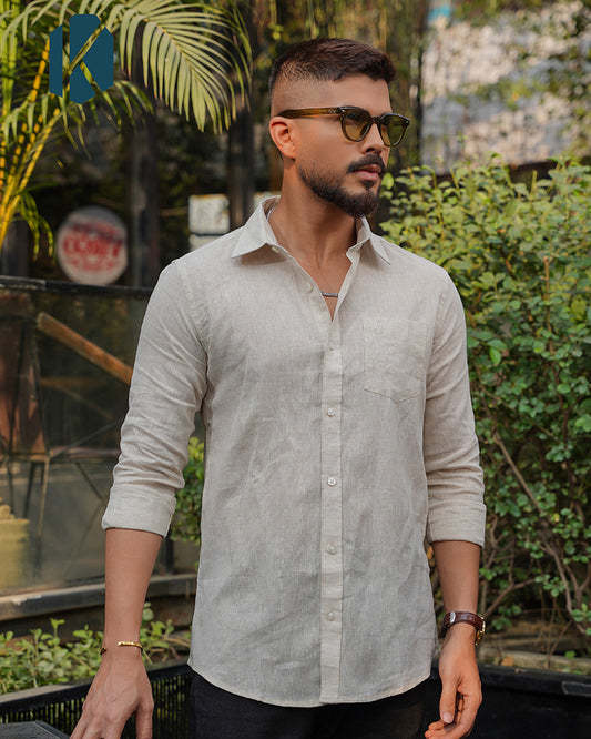 Cream Texture Remi Cotton Full Sleeve Shirt for Men – Effortless Neutral Elegance