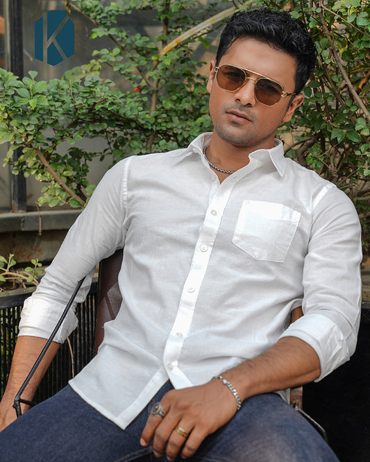 White Remi Cotton Full Sleeve Shirt for Men – The Ultimate Versatile Essential
