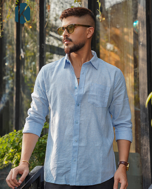 Light Sky Blue Remi Cotton Full Sleeve Shirt for Men – Fresh, Professional and Versatile