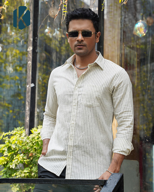 Cream & White Stripe Full Sleeve Shirt - Premium Fancy Cotton