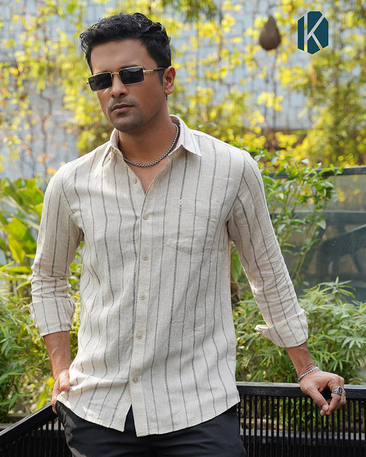 Beige & Black Stripe Full Sleeve Shirt - Premium Remi Cotton