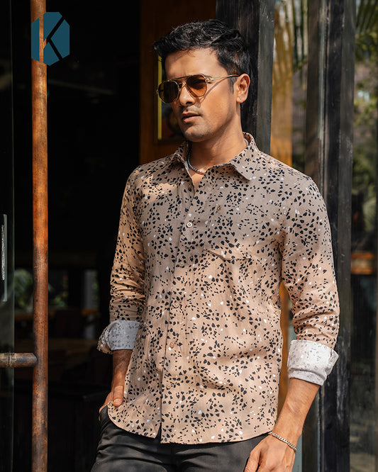 Sand Leopard Spot Print Full Sleeve Shirt - Premium Remi Cotton