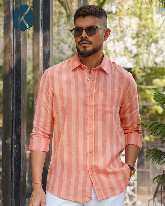 Peach & Cream Stripe Full Sleeve Shirt - Premium Remi Cotton