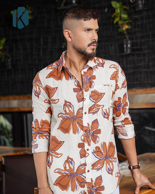 Off-White Bold Floral Print Remi Cotton Full Sleeve Shirt for Men – Artistic Statement Casual Style