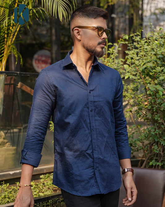 Deep Navy Blue Remi Cotton Full Sleeve Shirt for Men – Sharp Office & Smart-Casual Wear