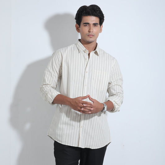 Cream & White Stripe Full Sleeve Shirt - Premium Fancy Cotton