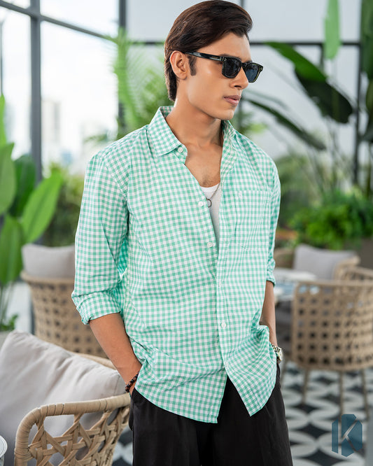 Green And White Cotton Check Full Sleeve Shirt – Kairo