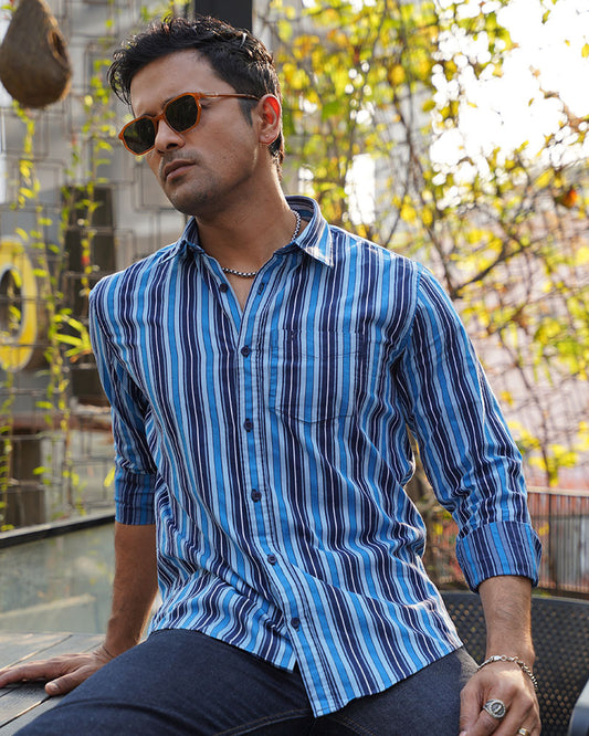 Blue Multi-Stripe Remi Cotton Full Sleeve Shirt for Men – Fresh Casual Weekend Style