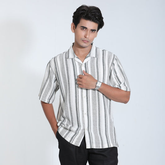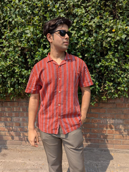 Orange Fancy Cotton Striped Half Sleeve Shirt