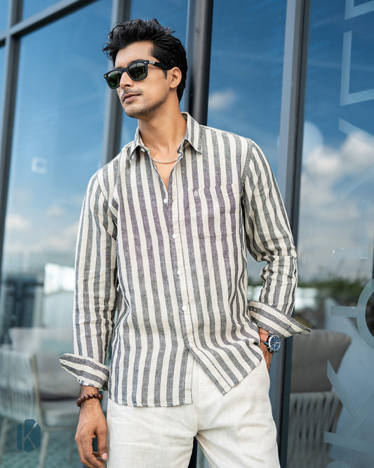 Black And White Striped Full Sleeve Remi-Cotton Shirt β Kairo