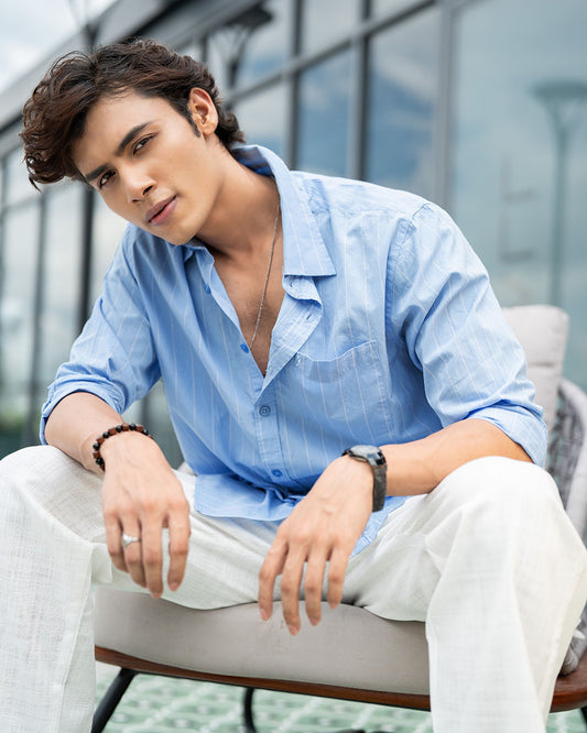 Sky Blue Cotton Stripe Full Sleeve Shirt β Kairo