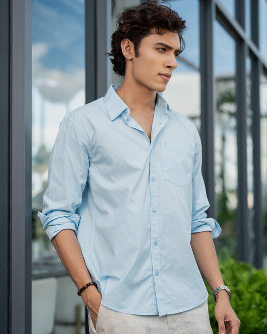 Sky Blue Cotton Full Sleeve Cotton Shirt β Kairo