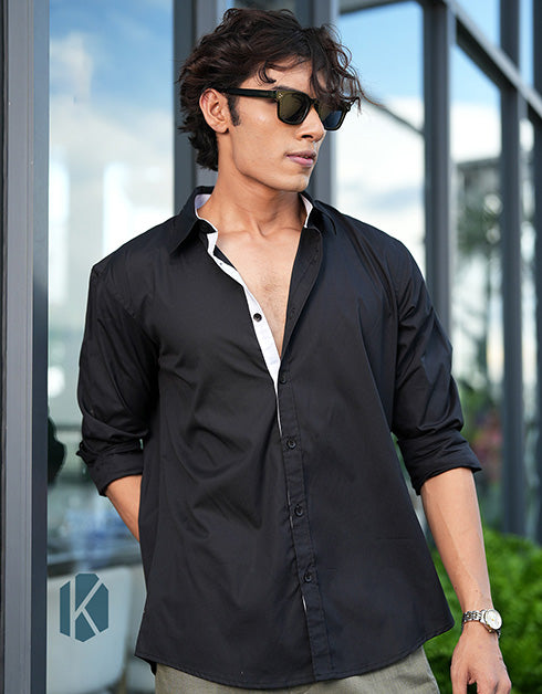 Black Cotton Full Sleeve Cotton Shirt β Kairo