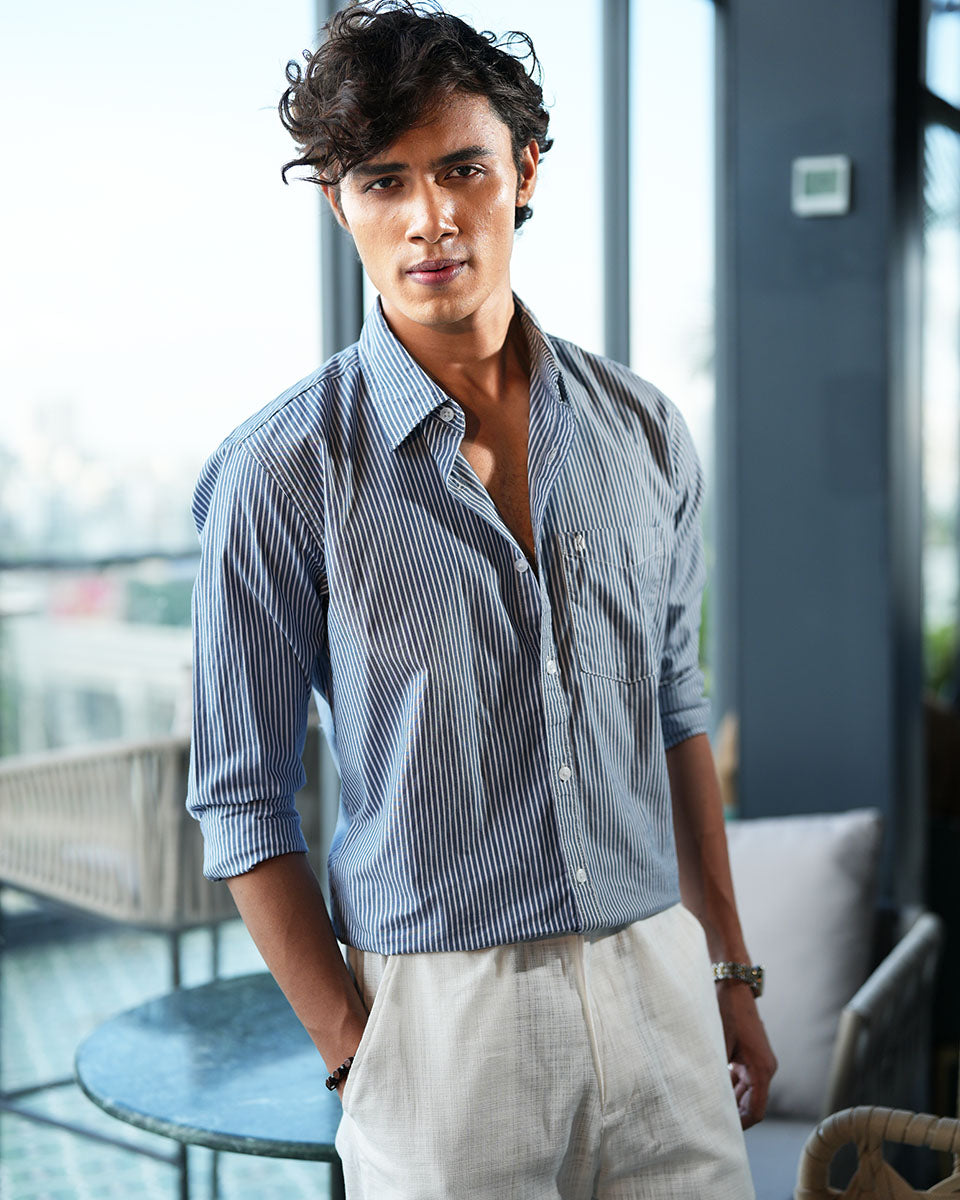 Blue And White Cotton Full Sleeve Shirt – Kairo