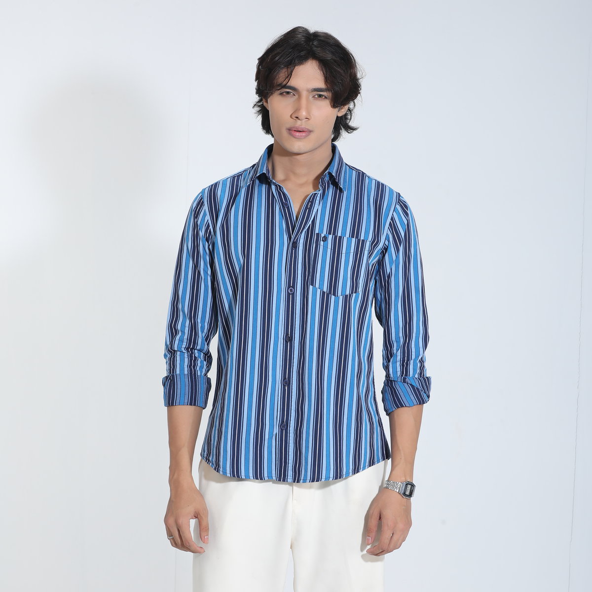 Blue Stripe Cotton Full Sleeve Shirt – Kairo
