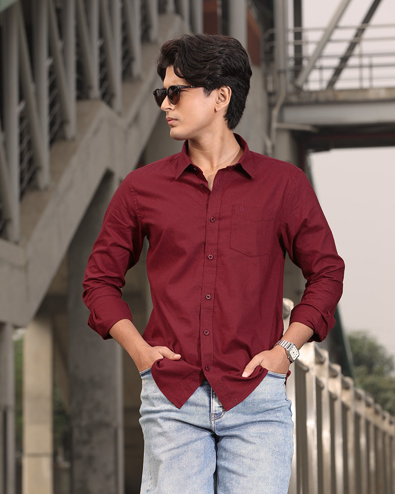 Maroon Color Remi Cotton Full Sleeve Shirt – Kairo