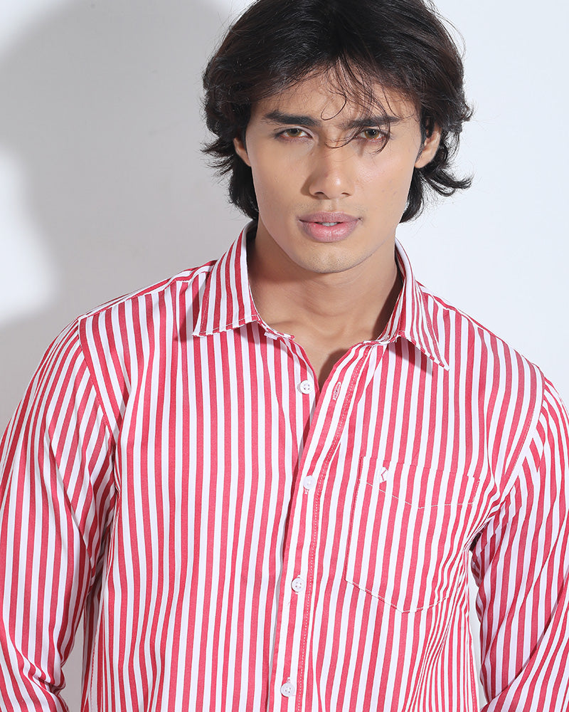 Red Color Striped Full Sleeve Cotton Shirt – Kairo